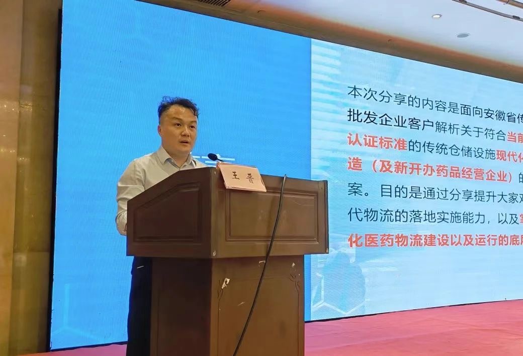 2025年4月15日,安徽省医药商业协会受省药监局委托,成功举办"医药冷链现代化物流新技术应用专题培训会"。协会特别邀请安徽嘉铖智信智能科技有限公司总经理王晋担任主讲嘉宾,围绕"医药物流现代化升级改造"主题展开专业培训。来自全省医药批发企业的120余名高管及仓储物流、质量管理人员参加了此次培训。